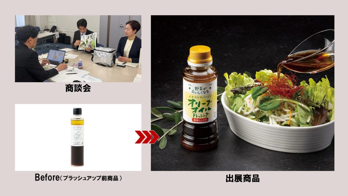最初「輸入オリーブオイルを売りたい」と相談したのですが、専門家の馬田さんから「オリーブオイルを売場に並べるのは非常に難しいのではないか」と。「加工品を通じてオリーブオイルを売っていく、そこから主原料のオリーブオイルへ」という助言をもらい、腑に落ちました。