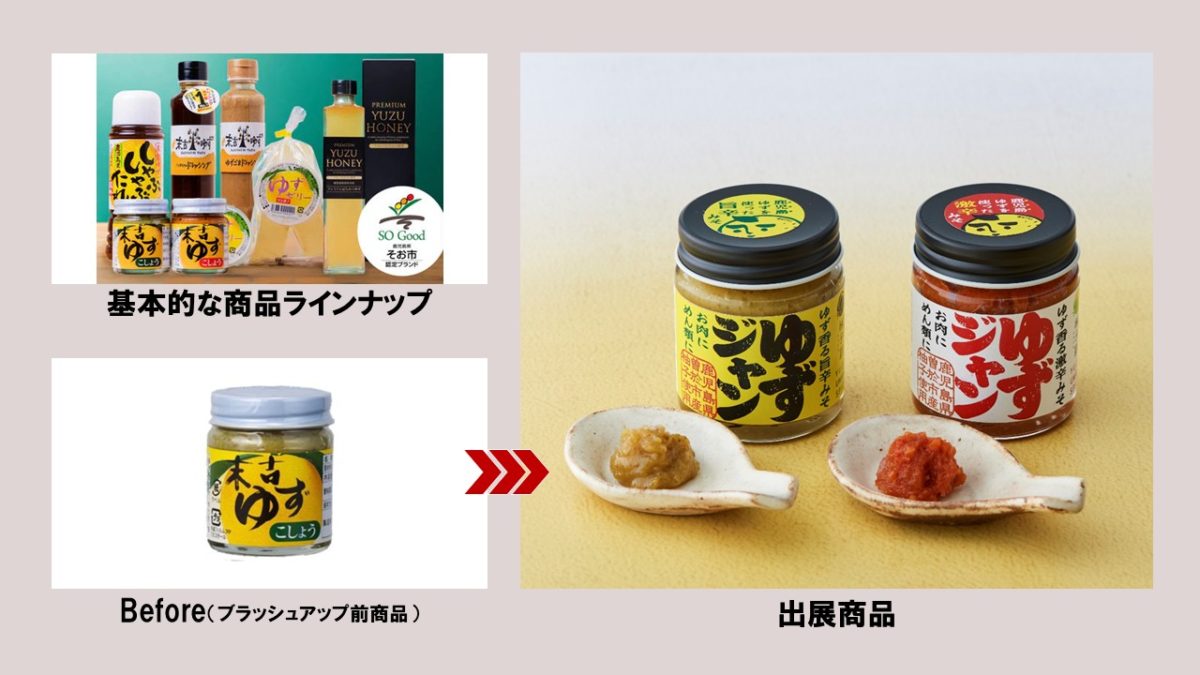 馬田さんからの「スーパーの棚は大手さんの商品で埋まっているが、スパイスの棚は広がっている」という助言を参考に、看板商品の柚子胡椒をベースにした調味料という基本コンセプトが浮かび上がりました。