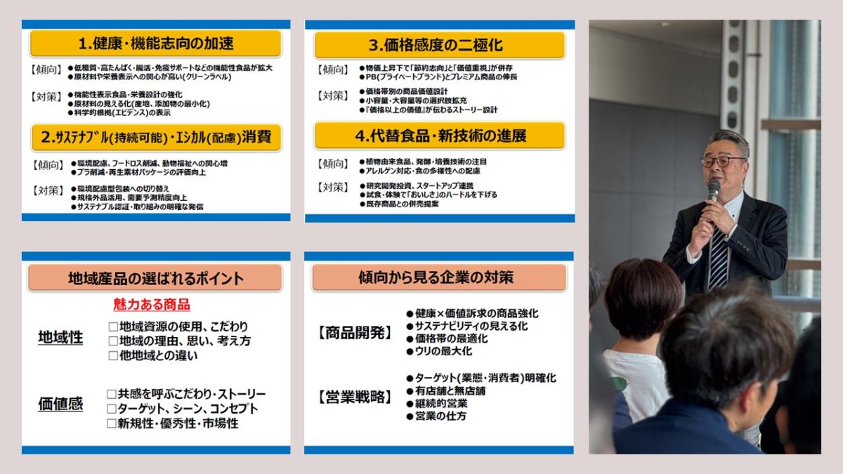 ―どの専門家も「まずは商品」とおっしゃいます。各社でどのように商品開発に取り組んでいるかを、株式会社メセナ食彩センターさんも含めて伺いました。